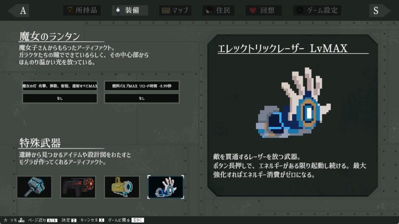 | 魔女の灯 | 攻撃・弾数・射程・連射MAX | 魔女子さんの家2F(クリア後) |