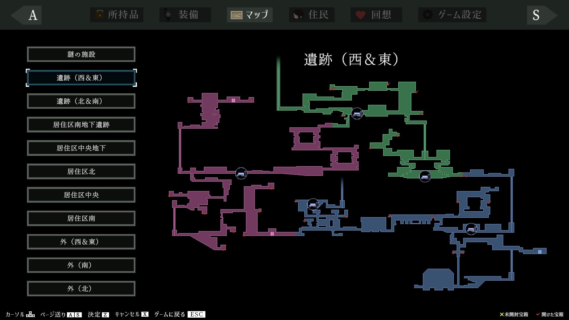クリア後には遺跡内のアイテムの位置をマップに追加する機能が解禁されます。
