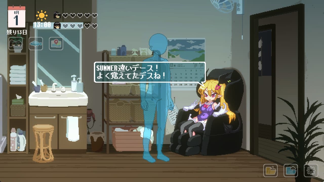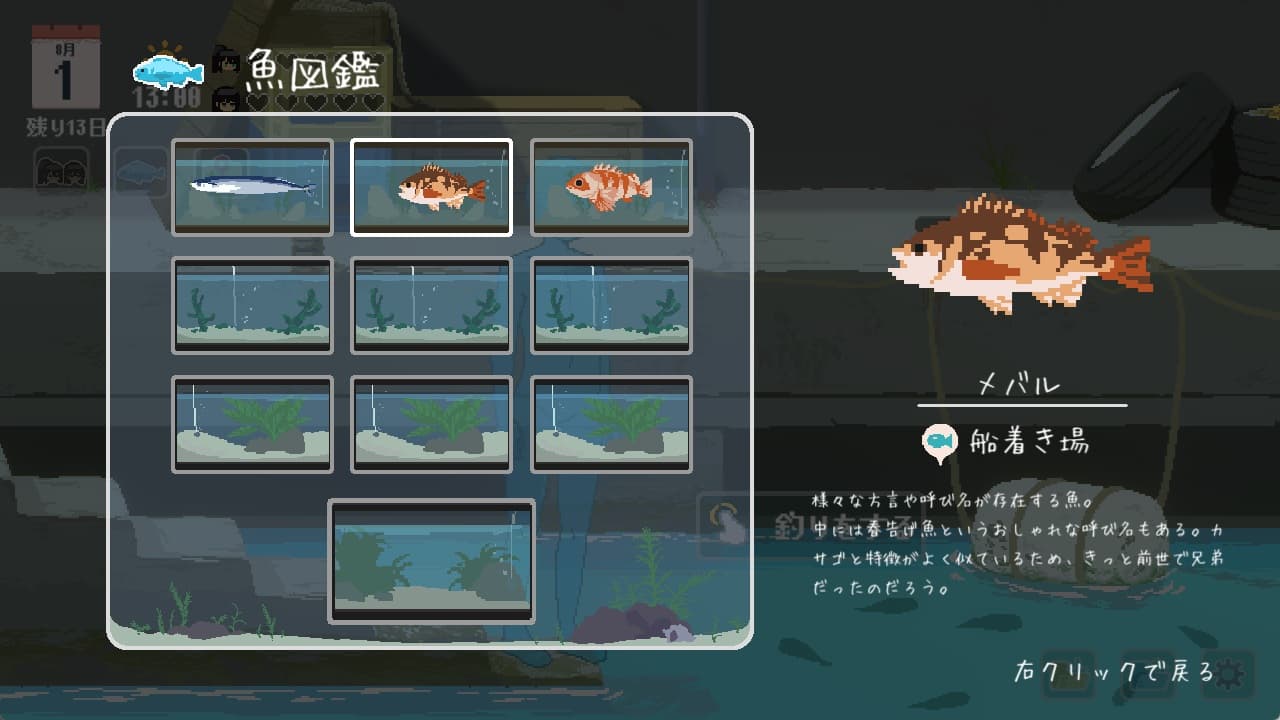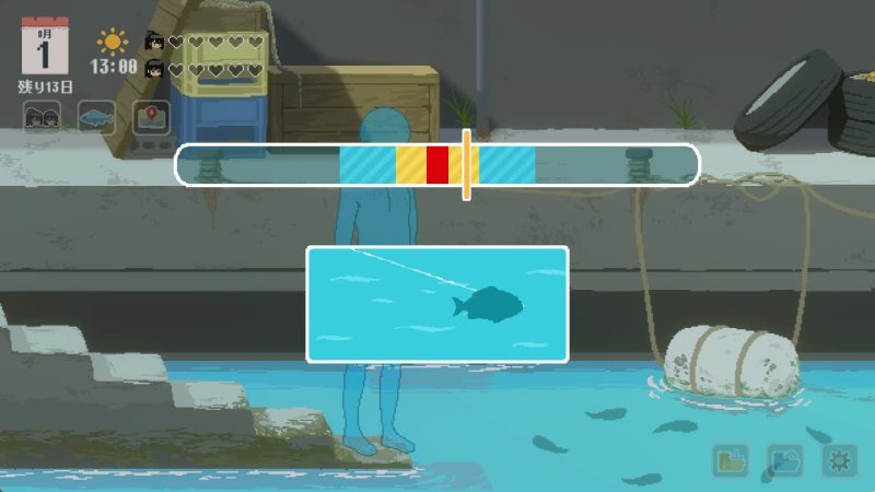 8月4日12時に桟橋の修理が完了して釣りができるようになります。自室で眠ると16時までスキップ可能です。