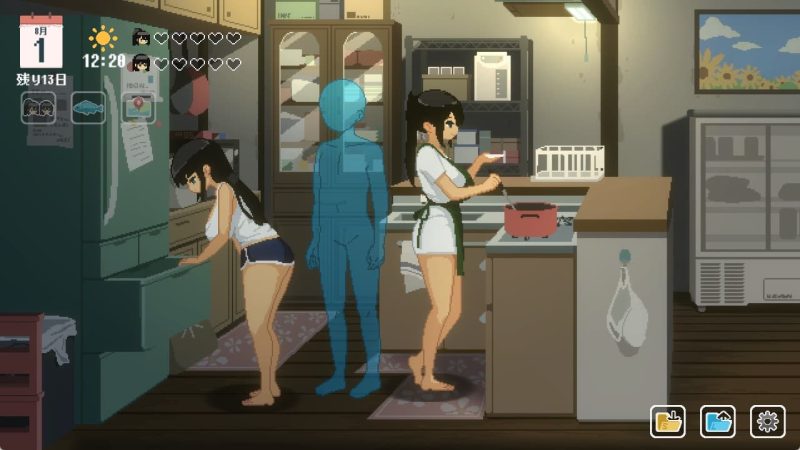 自室の金庫を調べるとパスワードの確認、お風呂前のドリンクケースで好感度の上げ下げが可能です。